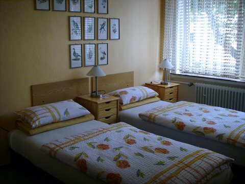 ![]() Die Zimmer sind hell und freundlich eingerichtet. Waschgelegenheit in jedem Zimmer. Die Toilette und das Badezimmer befinden sich auf der Etage. Hunde sind erlaubt (kostenpflichtig). Eigener Parkplatz (kostenpflichtig). Fahrradverleih (kostenpflichtig) |